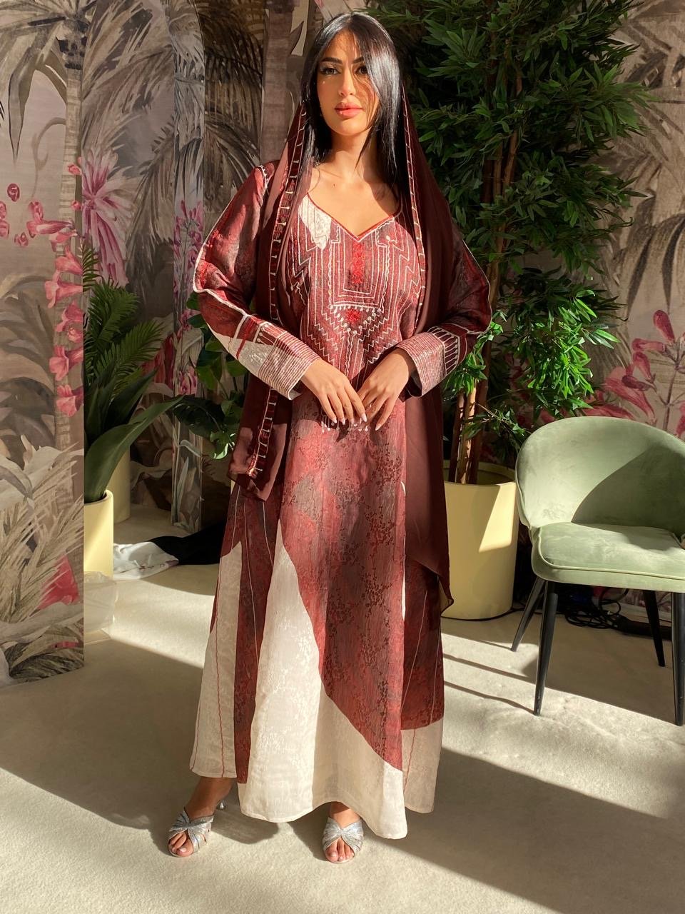 Elegant pure silk jalabiya featuring refined Aseeri embroide