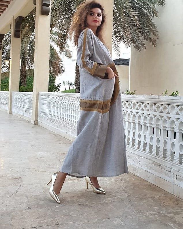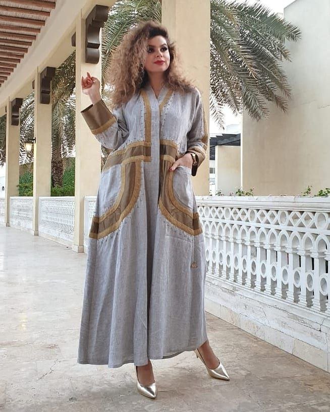 This elegant Saudi abaya, crafted from premium linen fabric,