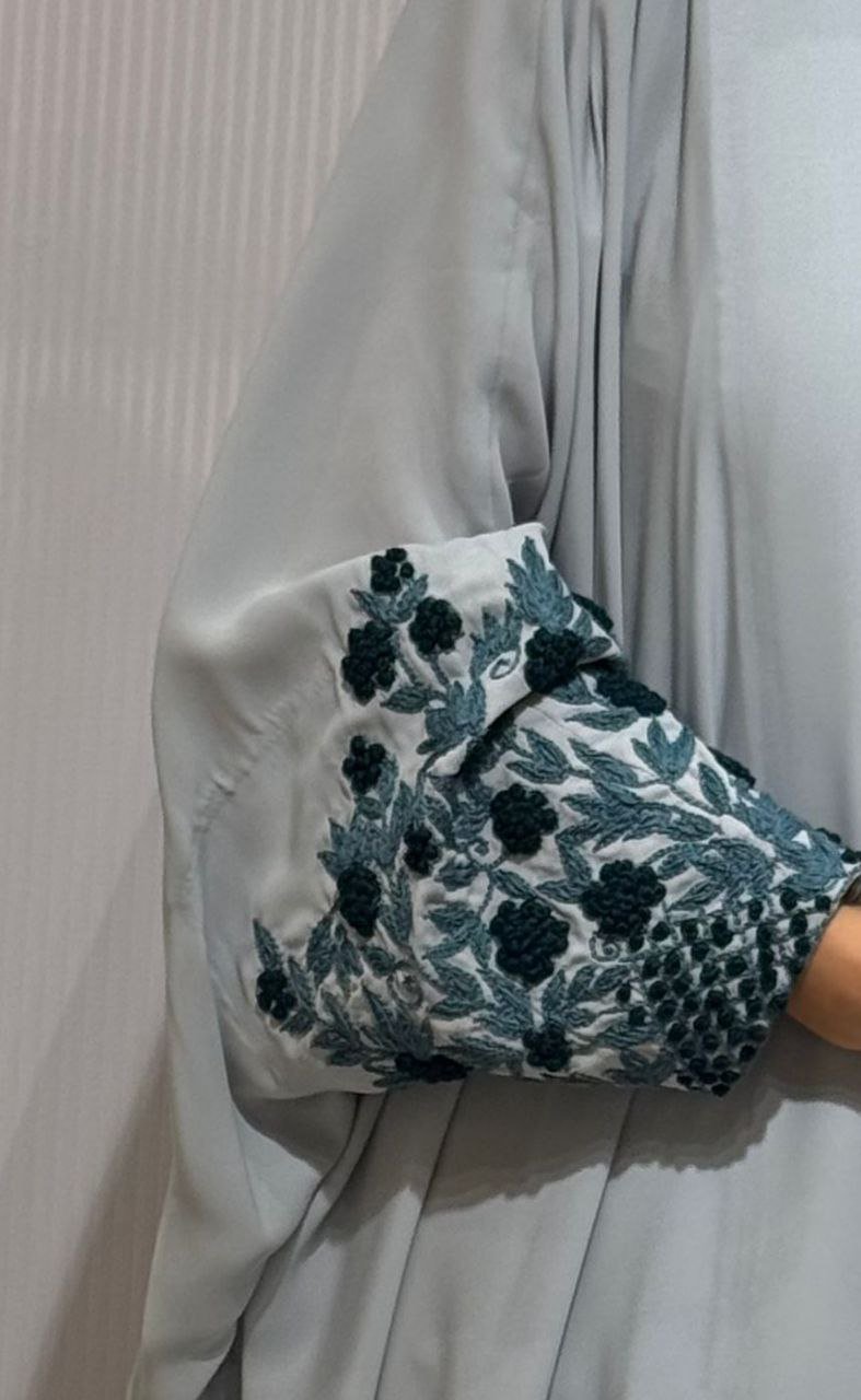 bisht with raised sleeves and embroidered shayla of the same