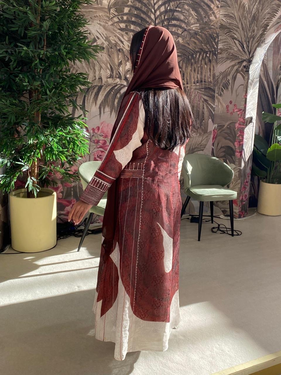 Elegant pure silk jalabiya featuring refined Aseeri embroide
